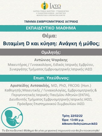 Εκπαιδευτικό Μάθημα Τμήματος Εμβρυομητρικής Ιατρικής ΙΑΣΩ με θέμα "Βιταμίνη D και κύηση: Ανάγκη ή μύθος;"