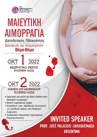 Σας ενημερώνουμε ότι η Επιστημονική Εκδήλωση «Μαιευτική Αιμορραγία ∆ιεισδυτικός Πλακούντας: ∆ιαχείριση και Αντιμετώπιση Βήµα-Βήµα», θα πραγματοποιηθεί στις 1 & 2 Οκτωβρίου 2022, στην Αίθουσα Εκδηλώσεων του ΙΑΣΩ.