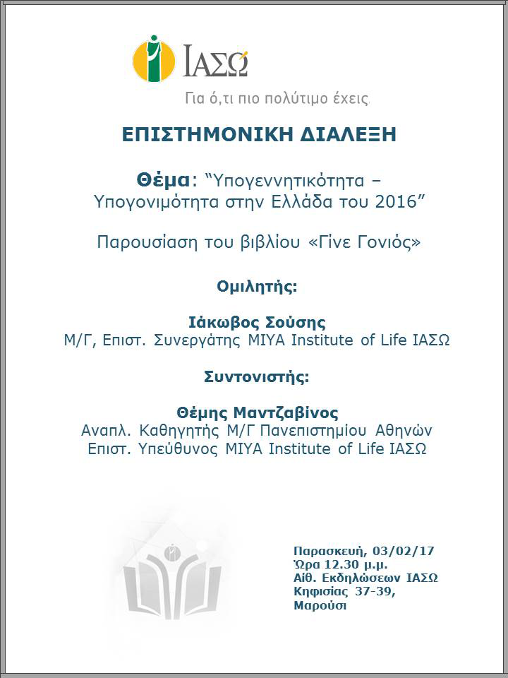 Σας ενημερώνουμε ότι την Παρασκευή 10 Φεβρουαρίου 2017 και ώρα 12:30 μ.μ. πρ...
