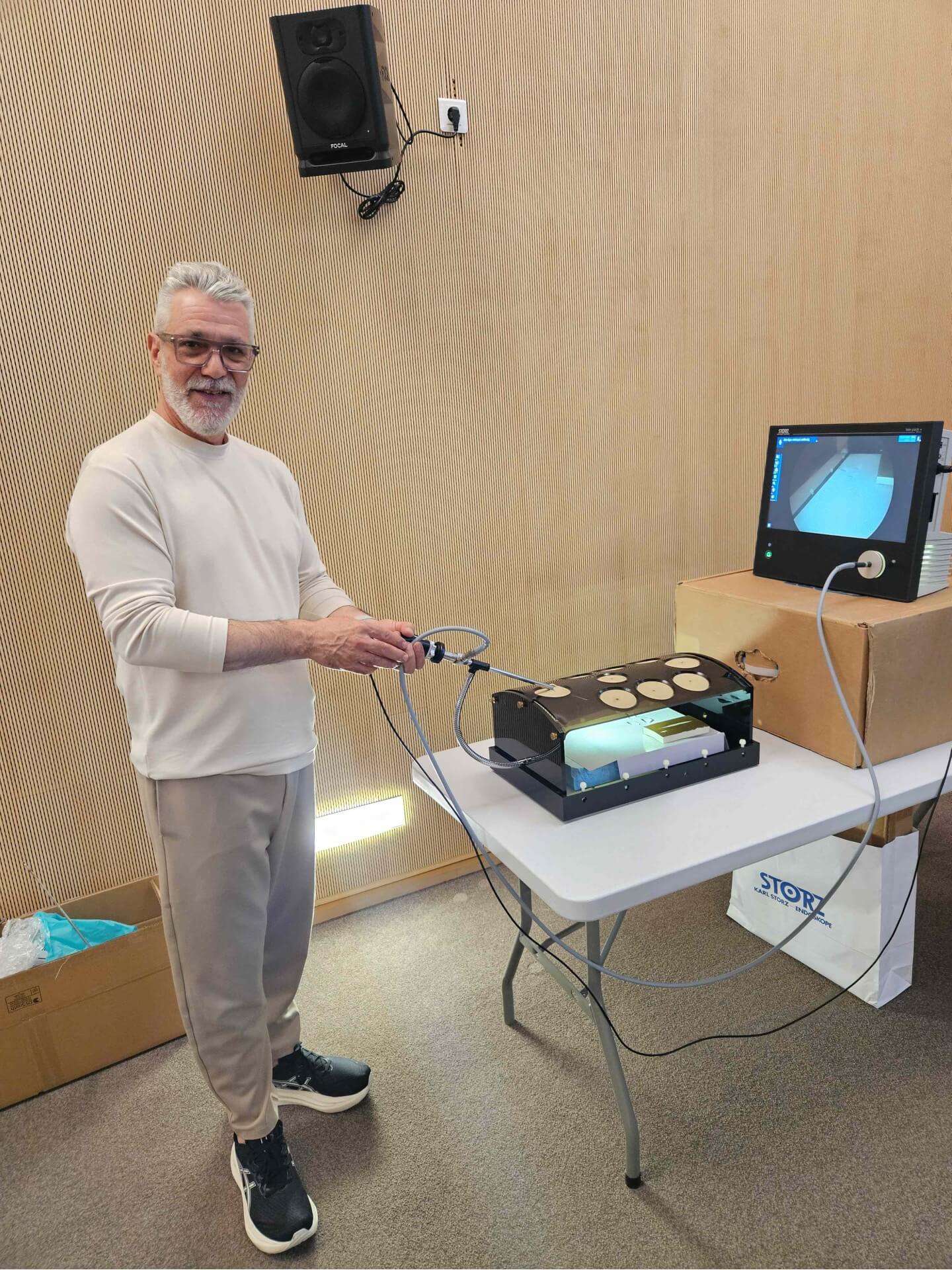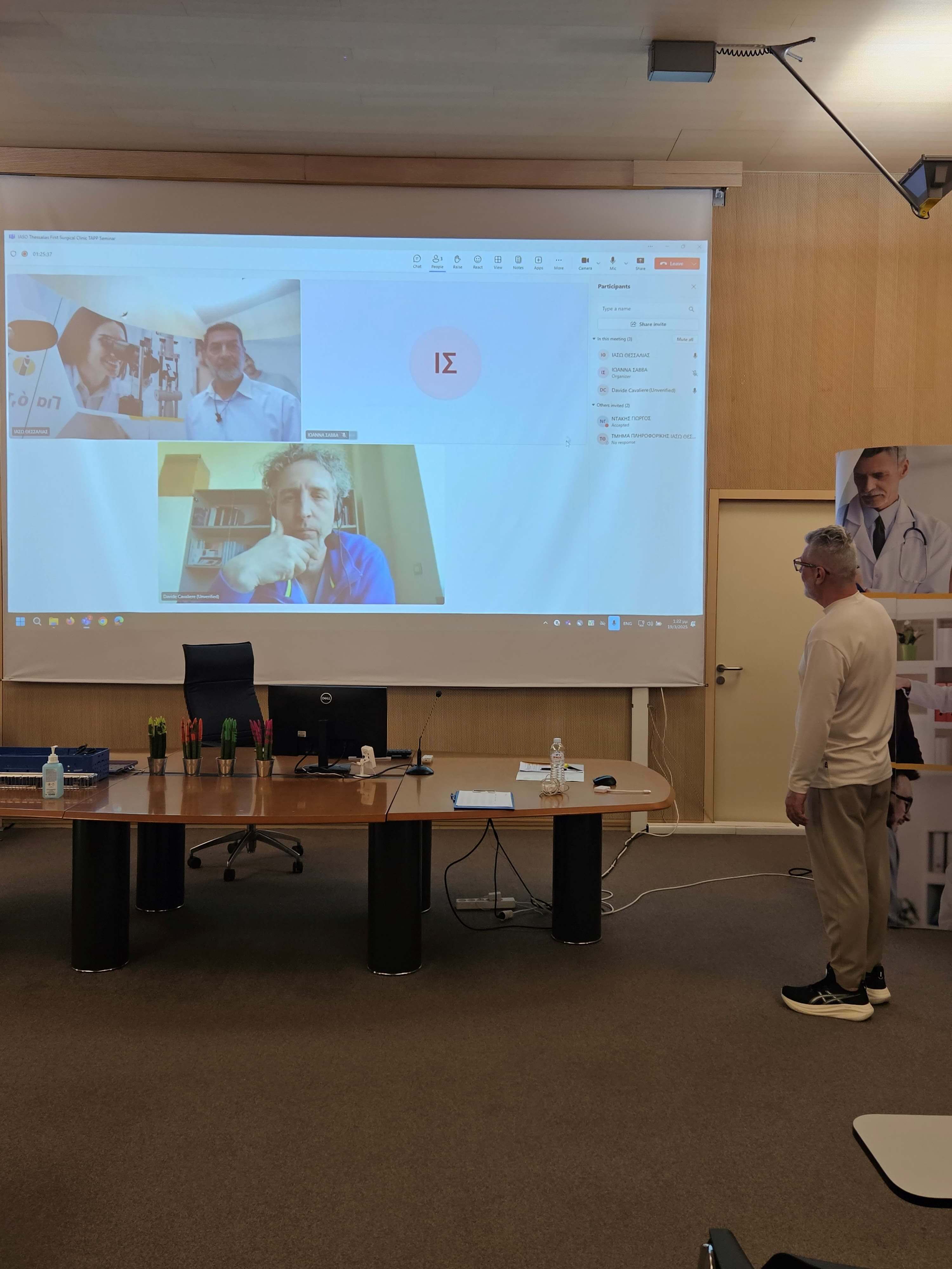Στη συνέχεια, χρησιμοποιώντας υψηλής ποιότητας εξοπλισμό, τα αναλώσιμα υλικά για τη χειρουργική επέμβαση, το απεικονιστικό σύστημα & pelvic trainer, ο Διευθυντής της Α΄ Χειρουργικής Κλινικής του ΙΑΣΩ Θεσσαλίας μοιράστηκε με τους εκπαιδευόμενους χειρουργούς συμβουλές και πρακτικές τεχνικές, προσομοιώνοντας μία επέμβαση. Στη διάρκεια της πρώτης μέρας, στο σεμινάριο συμμετείχε και ο διεθνούς φήμης Ιταλός Χειρουργός με εξειδίκευση στη λαπαροσκοπική τεχνική TAPP, Διευθυντής του Τμήματος Γενικής Χειρουργικής στο Νοσοκομείο της Faenza, Davide Cavaliere.