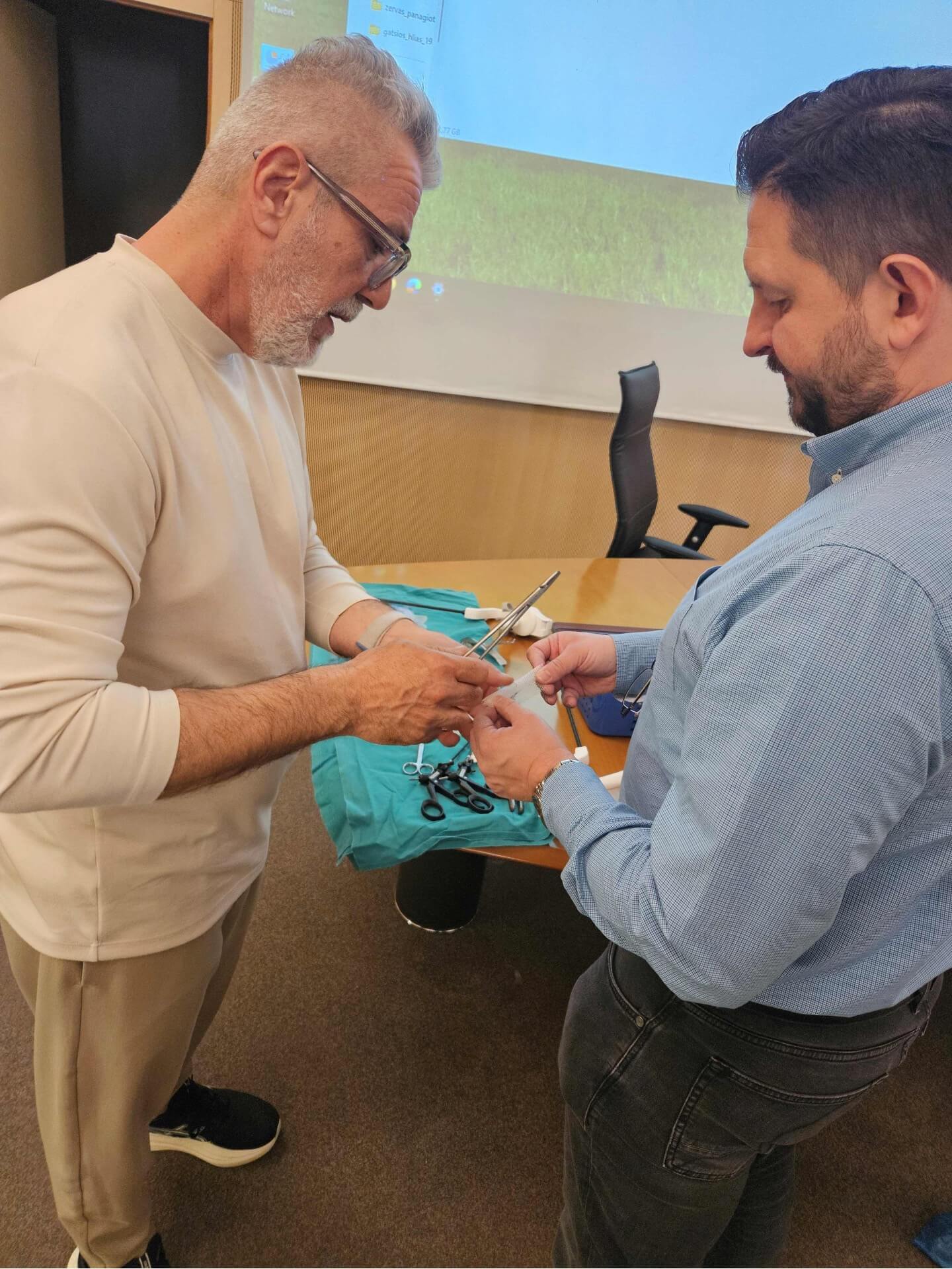 Ειδικότερα, ο Διευθυντής της Α΄ Χειρουργικής Κλινικής του ΙΑΣΩ Θεσσαλίας, Ευάγγελος Καναβός και η ομάδα του φιλοξένησαν και εκπαίδευσαν μία ομάδα χειρουργών σε ένα εντατικό εκπαιδευτικό σεμινάριο, τόσο σε θεωρητικό, όσο και σε πρακτικό επίπεδο.