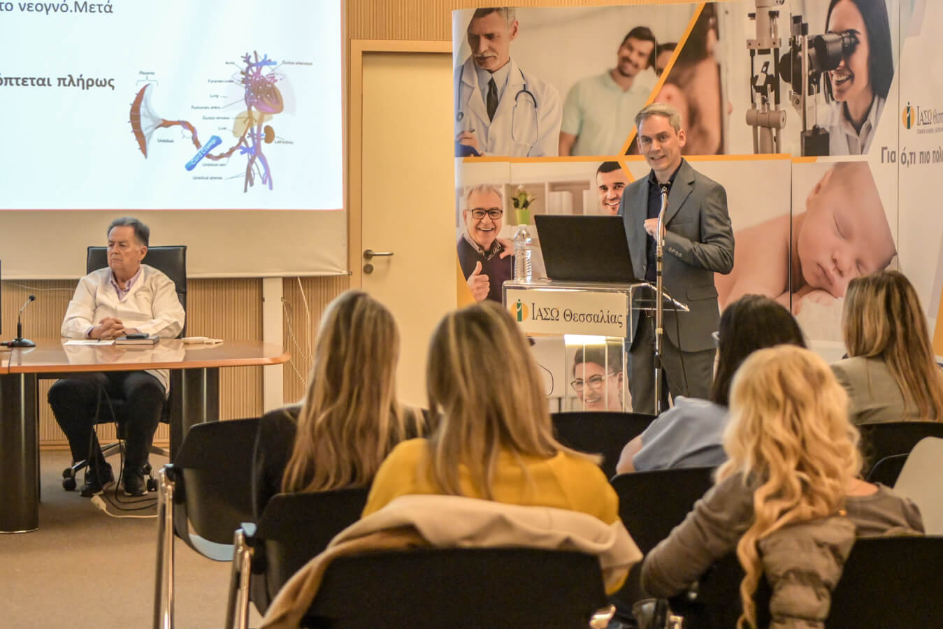 Στη συνέχεια, ο Βάιος Μπεμπές, Παιδίατρος - Νεογνολόγος και Επιστημονικός Συνεργάτης της ΜΕΝΝ ΙΑΣΩ Θεσσαλίας, ανέπτυξε το θέμα «Καθυστερημένη απολίνωση ομφάλιου λώρου – Συσχετισμός με την ηλικία κύησης και οφέλη για το νεογνό», παρουσιάζοντας τα νεότερα επιστημονικά δεδομένα και τα τεκμηριωμένα οφέλη της πρακτικής αυτής, ιδιαίτερα για τα πρόωρα νεογνά, σε επίπεδο αιμοδυναμικής προσαρμογής και συνολικής νεογνικής έκβασης.